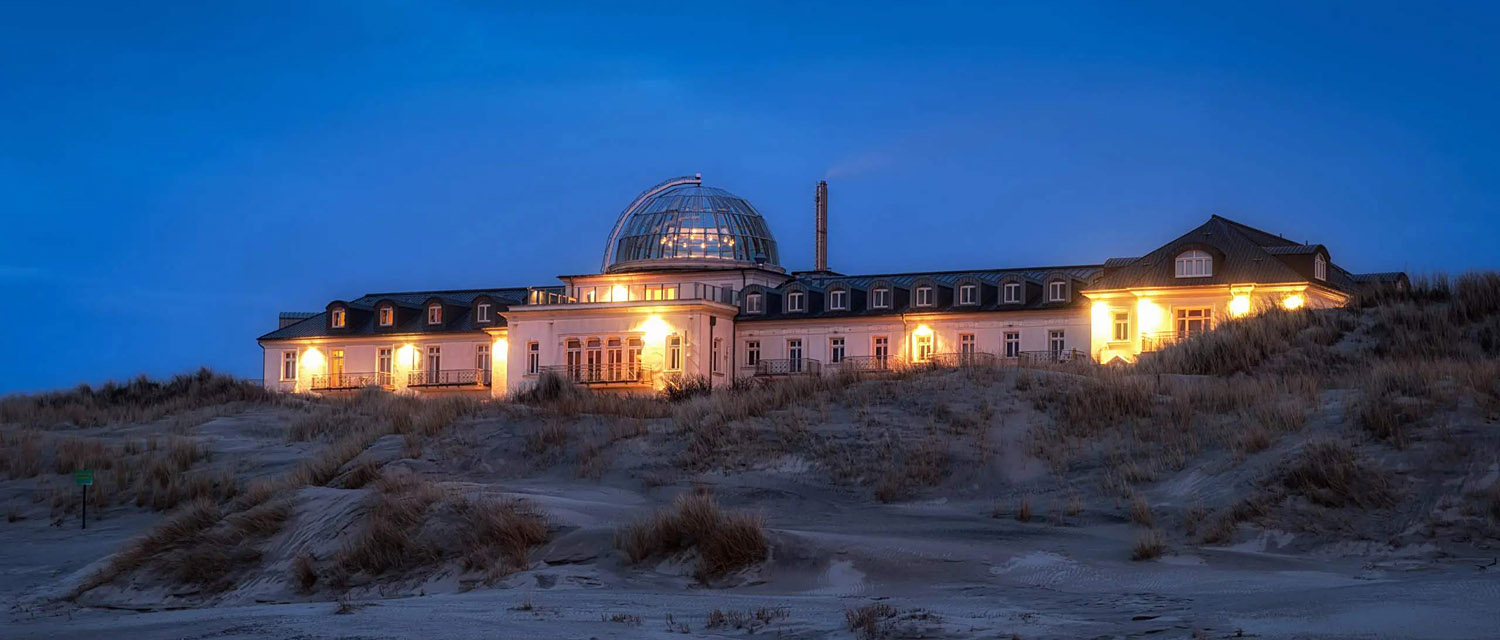 Das Strandhotel Kurhaus Juist ist das historische Wahrzeichen auf der autofreien NordseeInsel Juist im UNESCO Nationalpark niedersächsisches Wattenmeer und eines der imposantesten und größten Hotels in der südlichen Nordsee.