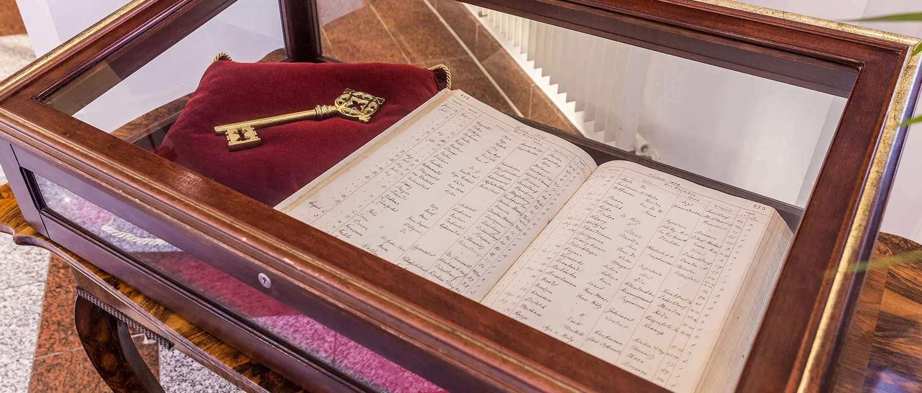 Im Foyer des Hauses finden Sie unser historisches Gästebuch in einer Vitrine. Es ist Zeugnis einer großen Epoche des Juister Fremdenverkehrs mit namhaften Einträgen aus Wirtschaft, Adel und gehobenem Bürgertum.