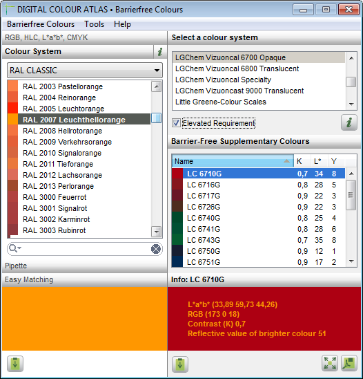 - Click on a colour in the list in order to obtain further information. You can save this list as a PDF file.